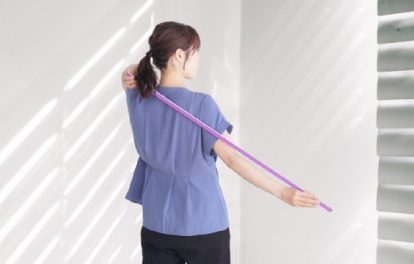 板チョコ1枚分の重さと同じ棒を使います。コリ固まった体を緩めて、体と心を静かに軽くしていく「姿勢美人ストレッチ」です。